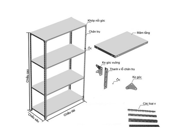 1. Phụ kiện kệ sắt V lỗ gồm những gì?
