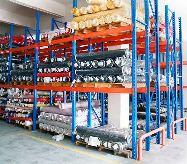 Kệ trung tải giúp sắp xếp các cuộn vải nặng một cách khoa học và an toàn.