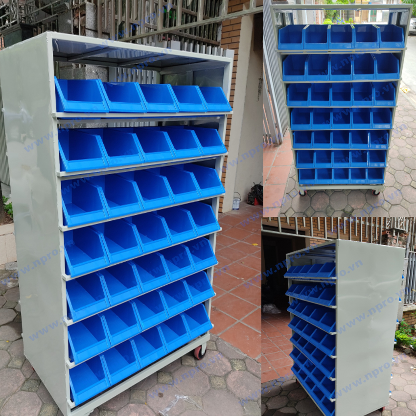 Kệ sắt kết hợp khay nhựa là giải pháp tối ưu số 1 cho kho linh kiện.